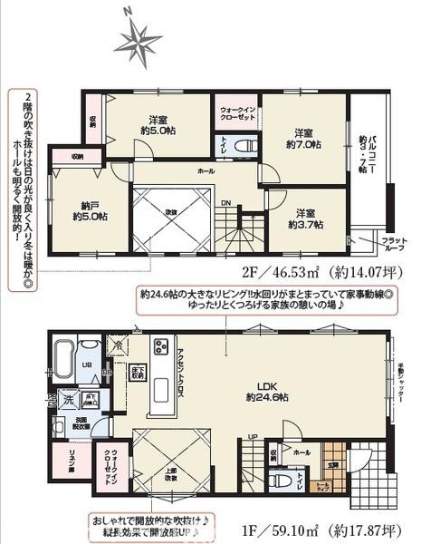 整形地平坦地緑豊かな住宅地閑静な住宅地南向き床下収納全居室収納吹抜け複層ガラスウォークインクローゼット浴室に窓全居室フローリングTVモニタ付インターホントイレ2ヶ所温水洗浄便座システムキッチンカウンターキッチン浄水器3口以上コンロ追焚機能オートバス陽当り良好通風良好フラット35・S適合証明書