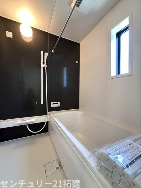 バス 2026年4月3日撮影♪【親子でゆったり癒やしの時】足を伸ばしてリラックスできる1坪タイプ。浴室乾燥機付きで、雨の日や花粉の季節の洗濯も安心です。お子様との会話も弾む、清潔感あふれるバスルーム。