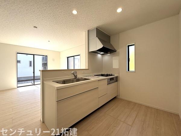 キッチン 2026年4月3日撮影♪調理がはかどるシステムキッチン♪収納豊富で、シンクも作業スペースも広いのでスムーズに料理ができますね。3口コンロ、グリル付です♪