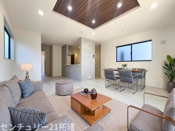 リビング 4月5日撮影♪朝は爽やかな日差しを浴びながら、家族みんなでおいしい朝食。昼下がりには読書やお昼寝でもしながらのんびりと過ごすひと時…。家族が集まる空間を、一番明るい空間に♪家具はCGになります。
