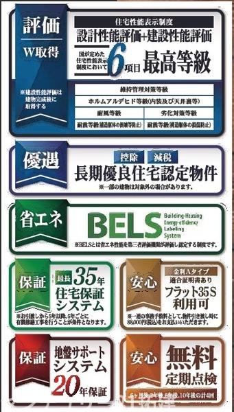| 設備 | 本下水 都市ガス 公営水道 公共下水 公共下水 設計住宅性能評価有 建設住宅性能評価書有(新築時) 長期優良住宅認定通知書有 建築確認完了検査済証有 高台に立地 整形地 緑豊かな住宅地 閑静な住宅地 都市近郊 市街地が近い 前道6m以上 始発駅 2沿線以上利用可 階建 2階建 外壁サイディング 部屋向き 南向き 日当り良好 通風良好 LDK広さ 15帖以上 上水道 公営 汚水 下水道 ガス 都市ガス フローリング 全居室フローリング 複層ガラス シャッター雨戸 駐車可能台数 2台可 24時間換気システム 全居室収納 収納スペース クローゼット ウォークインクローゼット シューズボックス 床下収納 システムキッチン カウンターキッチン ガスコンロ コンロ口数 三口 パントリー 浄水器 独立洗面台 シャンプードレッサー バス広さ 1坪以上 オートバス 追い焚き シャワー 浴室に窓 トイレ2ヶ所 温水洗浄便座 節水型トイレ バルコニー バルコニー有 南面バルコニー 専用庭 南庭 フラット35・S適合証明書有 全居室複層ガラス TVインターホン ディンプルキー ダブルロックドア 火災警報器(報知機) |