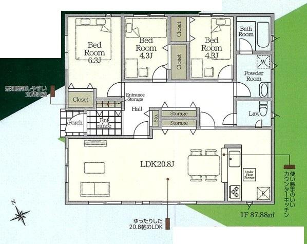 | 建物面積 | 87.88m² 実測 | ||