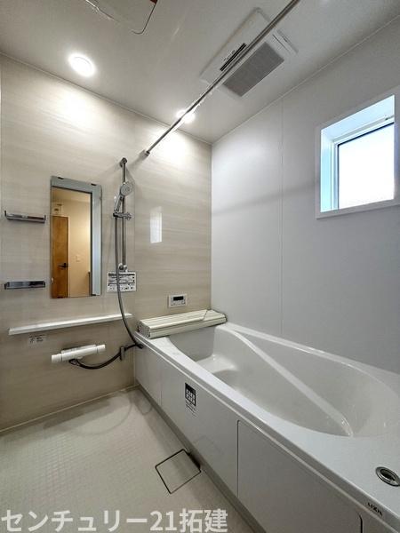 バス 2026年3月6日撮影♪【親子でゆったり癒やしの時】足を伸ばしてリラックスできる1坪タイプ。浴室乾燥機付きで、雨の日や花粉の季節の洗濯も安心です。お子様との会話も弾む、清潔感あふれるバスルーム。