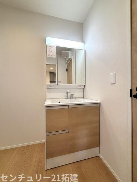 洗面台・洗面所 2026年3月2日撮影♪毎日使うものだから清潔な空間を保ちたい水回り。洗面にはそんな願いを解消させてくれる収納アイデアが満載です。三面鏡の裏側にはキャビネットが現れ小物から背の高い物まで収納できます