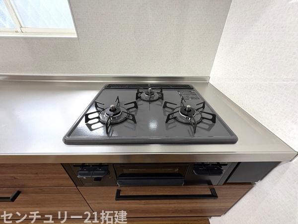 キッチン 2026年3月12日撮影♪調理がはかどるシステムキッチン♪収納豊富で、シンクも作業スペースも広いのでスムーズに料理ができますね。3口コンロ、グリル付です♪