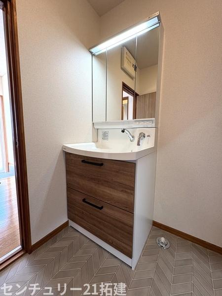洗面台・洗面所 2026年3月12日撮影♪毎日使うものだから清潔な空間を保ちたい水回り。洗面にはそんな願いを解消させてくれる収納アイデアが満載です。三面鏡の裏側にはキャビネットが現れ小物から背の高い物まで収納できます