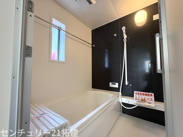 バス 2026年4月3日撮影♪【親子でゆったり癒やしの時】足を伸ばしてリラックスできる1坪タイプ。浴室乾燥機付きで、雨の日や花粉の季節の洗濯も安心です。お子様との会話も弾む、清潔感あふれるバスルーム。
