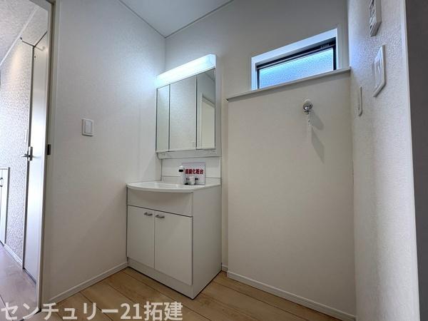 洗面台・洗面所 2026年4月3日撮影♪毎日使うものだから清潔な空間を保ちたい水回り。洗面にはそんな願いを解消させてくれる収納アイデアが満載です。三面鏡の裏側にはキャビネットが現れ小物から背の高い物まで収納できます