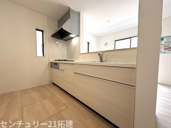 キッチン 2026年4月3日撮影♪調理がはかどるシステムキッチン♪収納豊富で、シンクも作業スペースも広いのでスムーズに料理ができますね。3口コンロ、グリル付です♪
