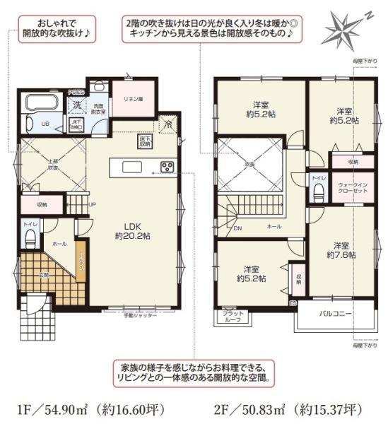 整形地始発駅緑豊かな住宅地閑静な住宅地南向き床下収納全居室収納吹抜け複層ガラスウォークインクローゼット浴室に窓全居室フローリングTVモニタ付インターホントイレ2ヶ所温水洗浄便座システムキッチンカウンターキッチン浄水器3口以上コンロ追焚機能オートバス陽当り良好通風良好フラット35・S適合証明書