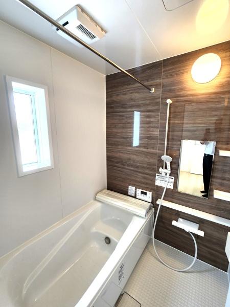 バス 施工例【親子でゆったり癒やしの時】足を伸ばしてリラックスできる1坪タイプ。浴室乾燥機付きで、雨の日や花粉の季節の洗濯も安心です。一日の疲れをリセットし、お子様との会話も弾む、清潔感あふれるバスルーム。