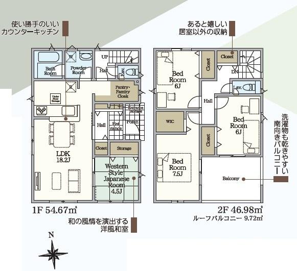 | 設備 | 都市ガス 公営水道 個別浄化槽 浄化槽 設計住宅性能評価有 建設住宅性能評価書有(新築時) 建築確認完了検査済証有 高台に立地 緑豊かな住宅地 閑静な住宅地 都市近郊 市街地が近い 階建 2階建 外壁サイディング 部屋向き 南向き 採光面 2面採光 日当り良好 通風良好 LDK広さ 18帖以上 和室 上水道 公営 汚水 個別浄化槽 ガス 都市ガス フローリング 複層ガラス 駐車可能台数 3台以上可 24時間換気システム 全居室収納 収納スペース クローゼット ウォークインクローゼット シューズインクローゼット 床下収納 システムキッチン カウンターキッチン ガスコンロ コンロ口数 三口 パントリー 浄水器 独立洗面台 シャンプードレッサー バス広さ 1坪以上 オートバス 追い焚き シャワー 浴室に窓 浴室暖房 浴室乾燥機 トイレ2ヶ所 温水洗浄便座 節水型トイレ バルコニー バルコニー有 南面バルコニー 専用庭 フラット35・S適合証明書有 全居室複層ガラス TVインターホン ディンプルキー ダブルロックドア 火災警報器(報知機) | ||